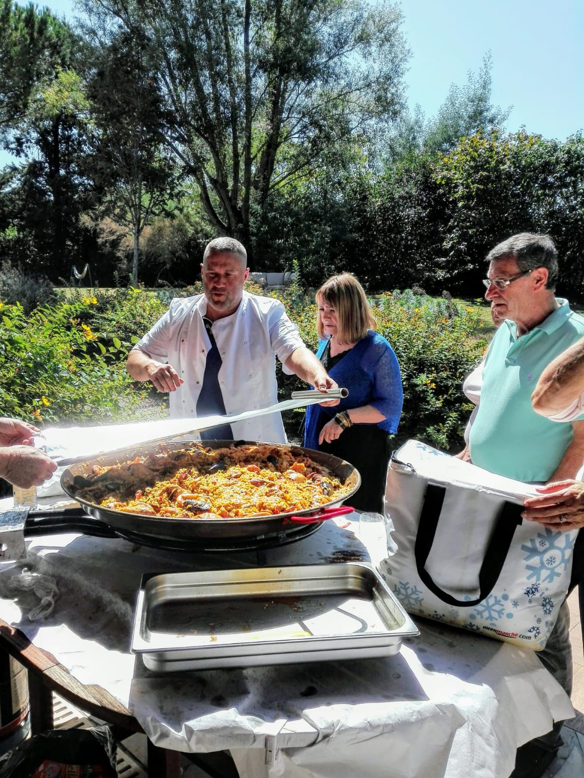 autour d'un repas dont la pièce maîtresse: La Paella a été préparée sur place