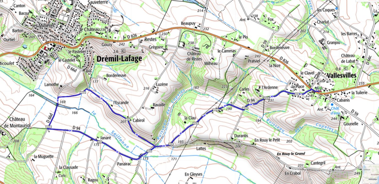 De Vallesvilles au château de MontauriolRetour par Janaré et La Clau